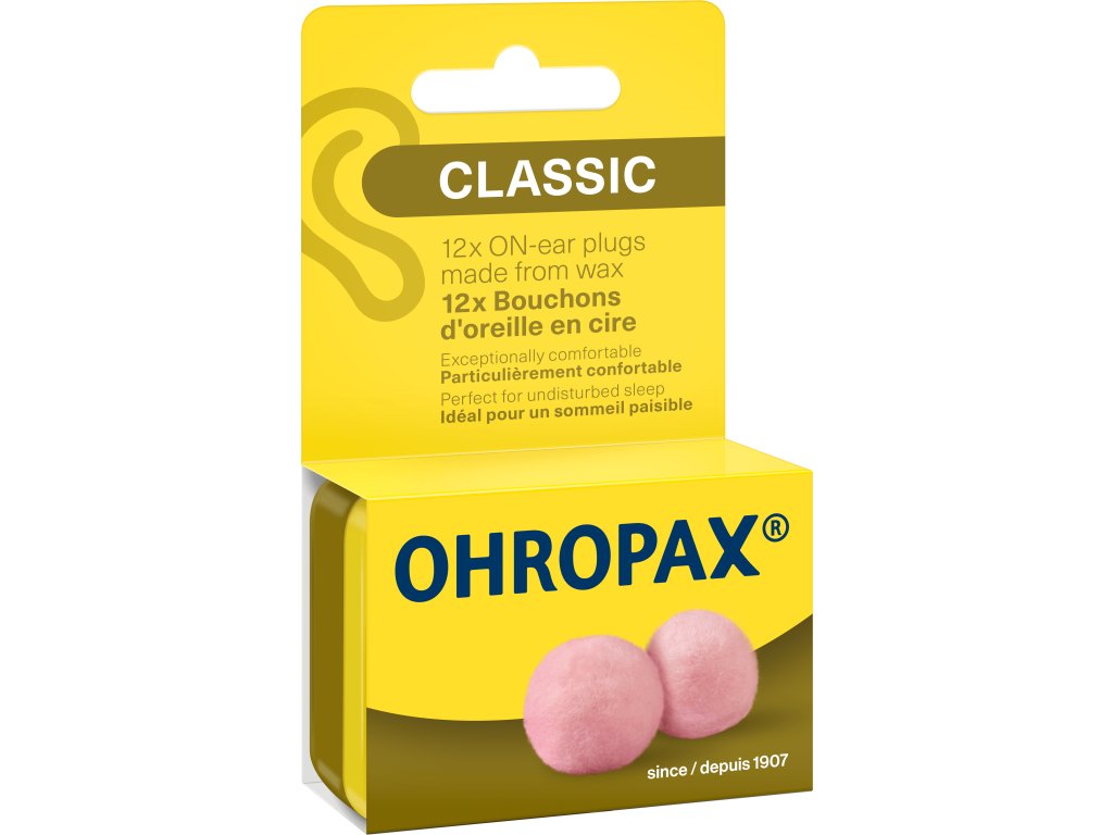 Ohropax Classic jsou tvarovatelné voskové špunty s více než stoletou tradicí. Přizpůsobí se jedinečnému tvaru vašeho ucha, utlumí chrápání, hluk v letadle i rušné prostředí – a díky měkkému vosku je ani po celé noci neucítíte.